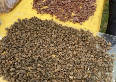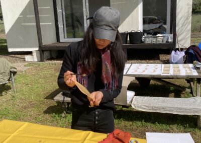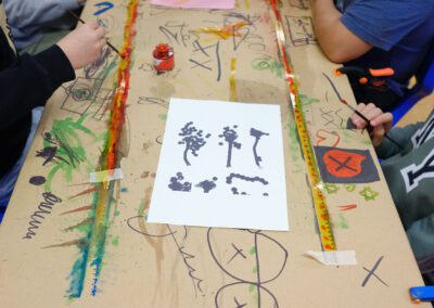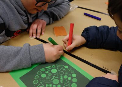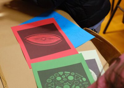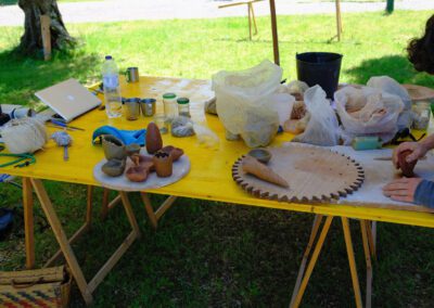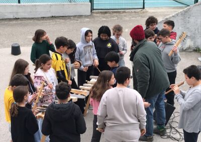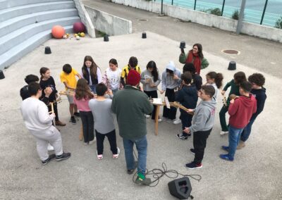 Um litofone é um instrumento musical semelhante a um xilofone cujo som é produzido por percussão em pedras recolhidas pelo coletivo Guarda Rios em diferentes rios. Os alunos são convidados a fazer ritmos simples, que vão sendo tocados em camadas através de um pedal de loop.