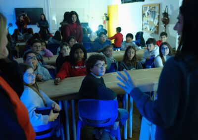 A ESCOLA RIO é um programa do coletivo Guarda Rios direcionado a agrupamentos escolares, associações de pais, público infanto-juvenil, onde através de dinâmicas sensoriais e experiências plásticas, se abordam questões relacionadas com a água, rios e ecossistemas.
