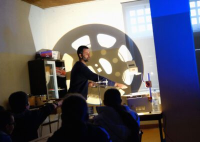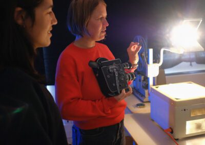 Trabalhando com luz projectada, através de um projector de 16mm para mostrar um excerto em película do filme Pedras Instáveis da cineasta Ewelina Rosinska (presente na sessão).