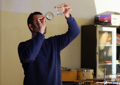 Nesta experiência visual, observam-se os movimentos destes microrganismos de paredes celulares siliciosas, levando-nos a uma reflexão sobre as diferentes formas e escalas da vida, a sua importância nos ecossistemas e de que forma estão presentes no nosso dia a dia, inclusivamente na água que bebemos.